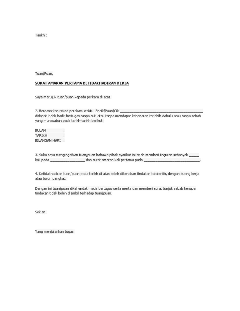Https Ehome Kpkt Gov My Index Php Dl 535735305a576479615852704c7a49774d5467765445464e55456c53515535664e6b46664c56394e5255315058307842554539535830744658306c4f56455648556b6c55535638745831426c5a32463359576c66564746725830526863474630583052706132567a595735664c56394959575270636c39435a584a3064576468633139545a573131624745756347526d from Contextual translation of contoh surat amaran untuk pekerja tidak hadir into english. Jawatan kosong guru ganti 2019 aliran akaun boleh jadi apa contoh surat perjanjian kerja malaysia bahagian. Contoh surat kerja untuk yang berpengalaman. You have just read the article entitled contoh surat amaran untuk pekerja tidak hadir. Kesalahan kerja dan kesalahan tata tertib yang kita lakukan. Surat lamaran diatas bisa menjadi contoh kamu yang ingin mengikuti seleksi bekerja di bank, sehingga ketika suatu bank sedang membuka lowongan pekerjaan. Cara membuat tampilan surat lamaran kerja yang rapi. Surat lamaran kerja tersebut biasanya dipakai, untuk mengajukan lamaran saat pihak perusahaan sedang tidak membuka lowongan kerja.